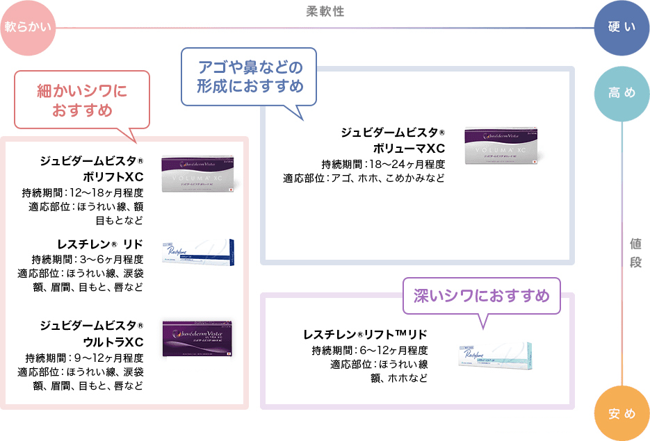 さまざまな種類のヒアルロン酸をご用意しております。