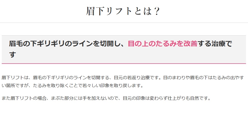 眉毛の下を切開し、目の上のたるみを取る施術。