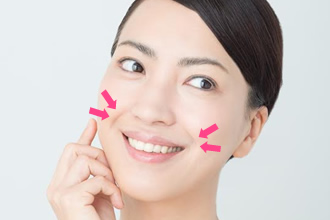 ホホから口もとの印象を若く見せたい。口角にシワが刻まれている。ホホのたるみと共にほうれい線が目立ってきた
