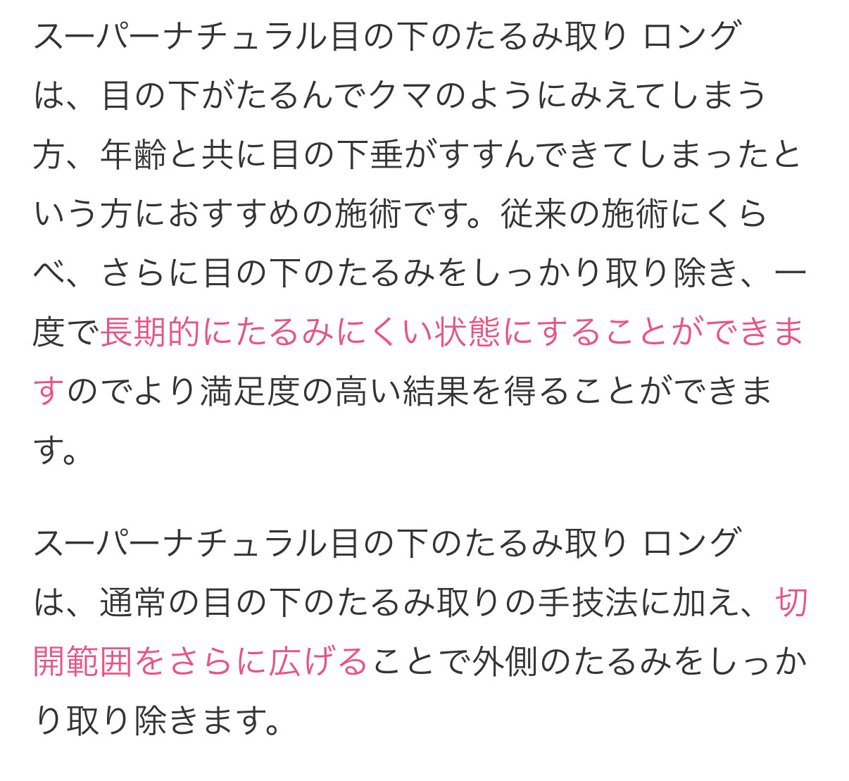 施術名:スーパーナチュラル目の下のたるみ取り ロング
