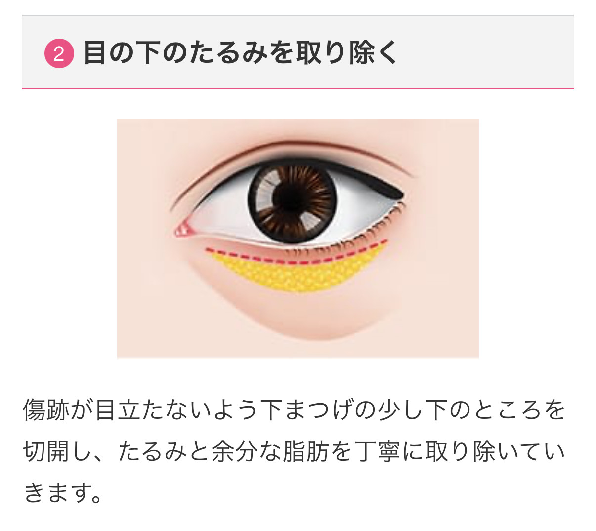 下まぶたの脂肪や余分な皮膚を除去してたるみを取る施術