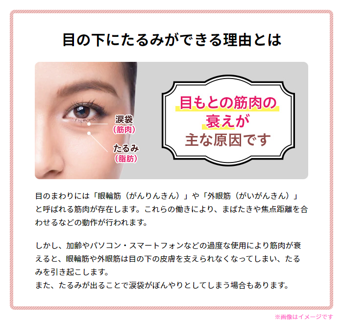 - 目の下がたるんでクマに見える