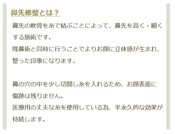 鼻先の軟骨を縫い合わせて鼻先を小さくする施術。
