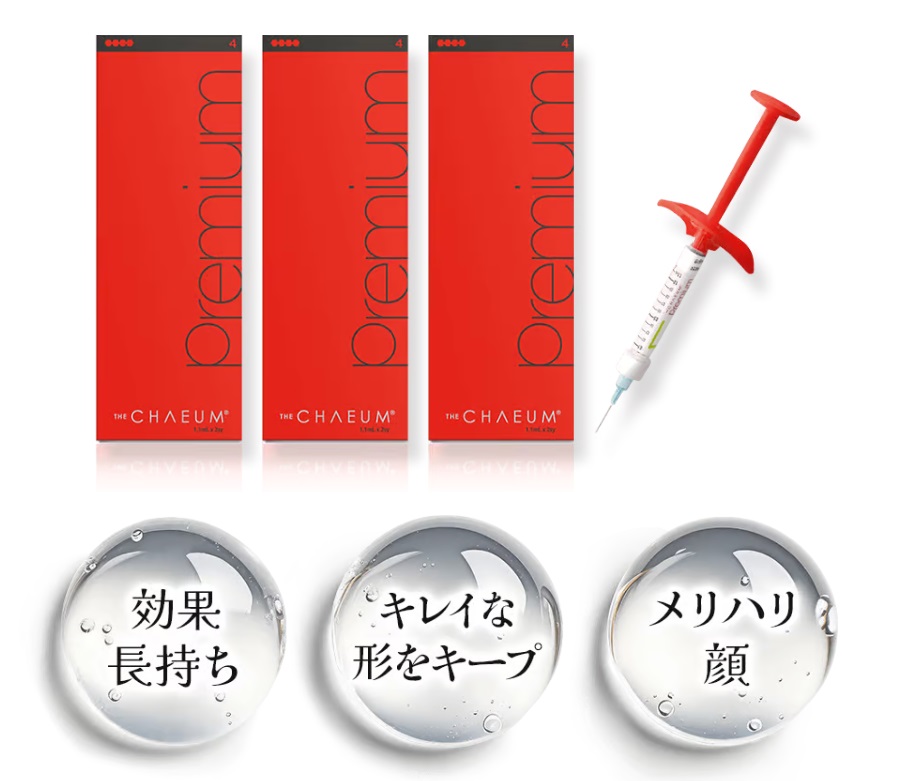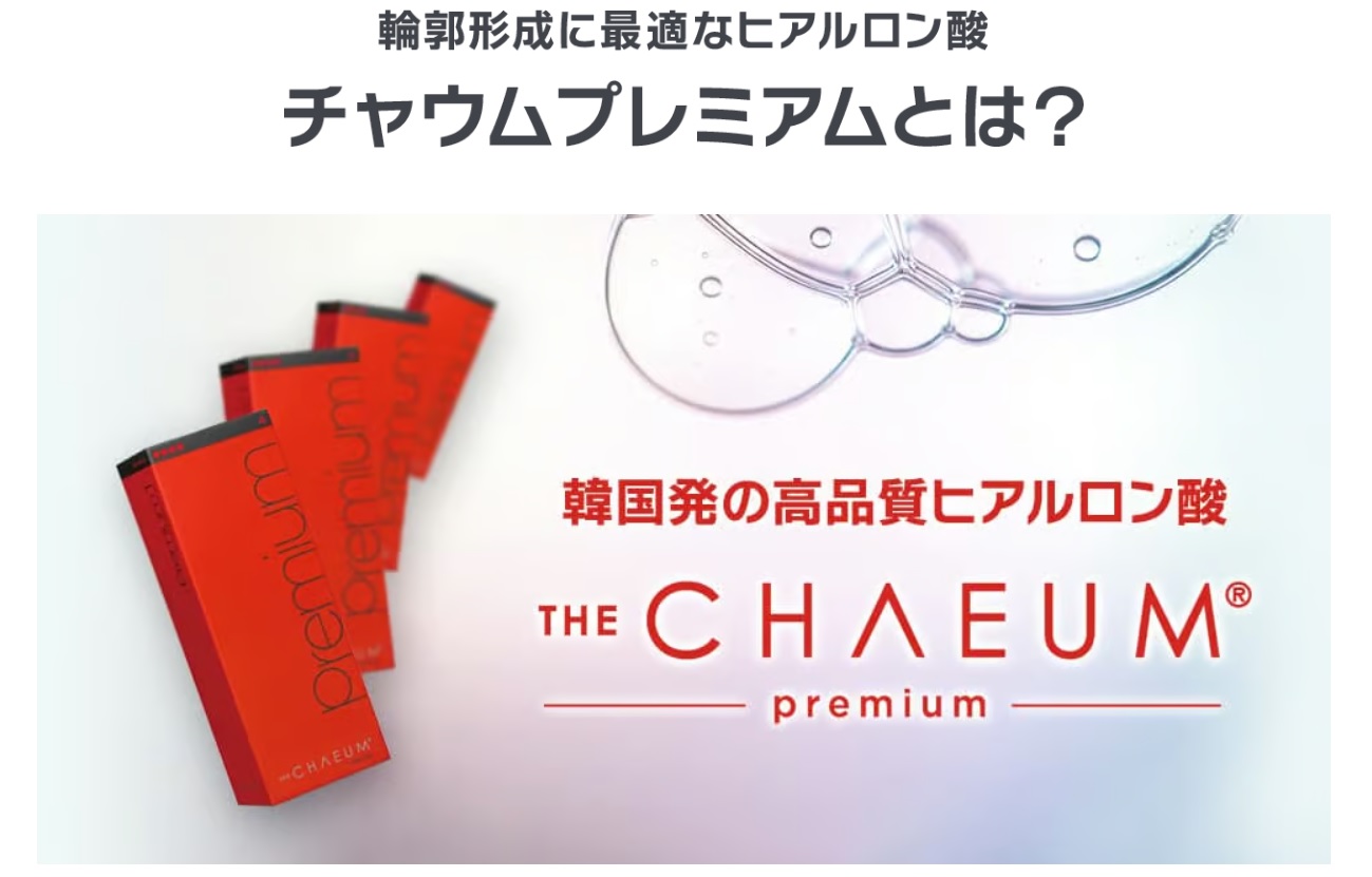 チャウムプレミアムは、韓国シェアNo.1を誇るHugel社のヒアルロン酸製剤で欧州のCEマークを取得し、韓国のKFDAにも承認された次世代型のヒアルロン酸です。