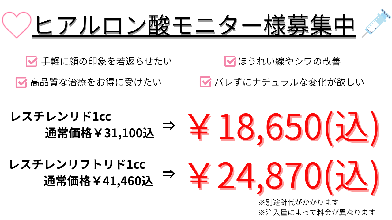 【池袋院】服部先生のヒアルロン酸モニター様大募集