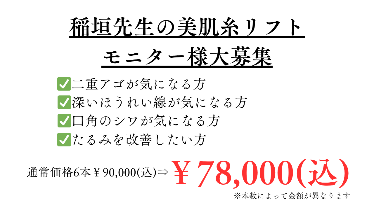 【池袋院】稲垣先生の美肌糸リフト モニター様大募集