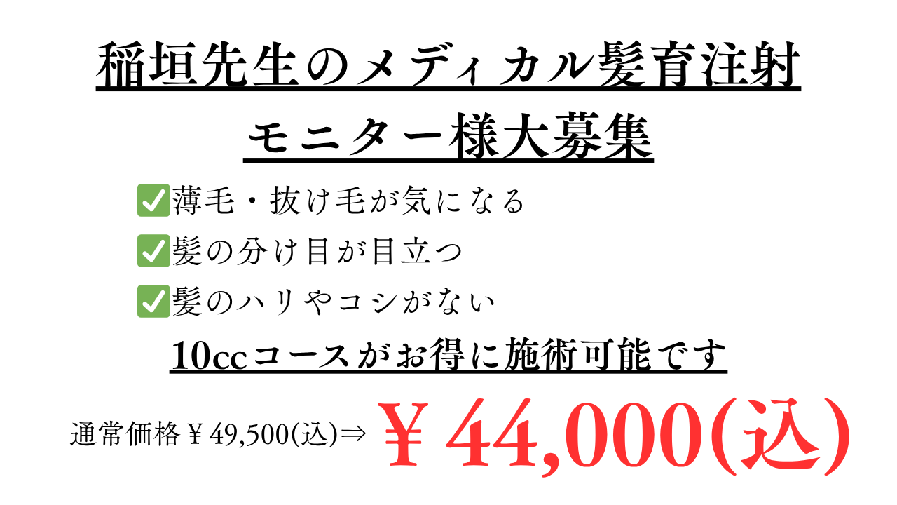 【池袋院】稲垣先生のメディカル髪育注射 モニター様大募集