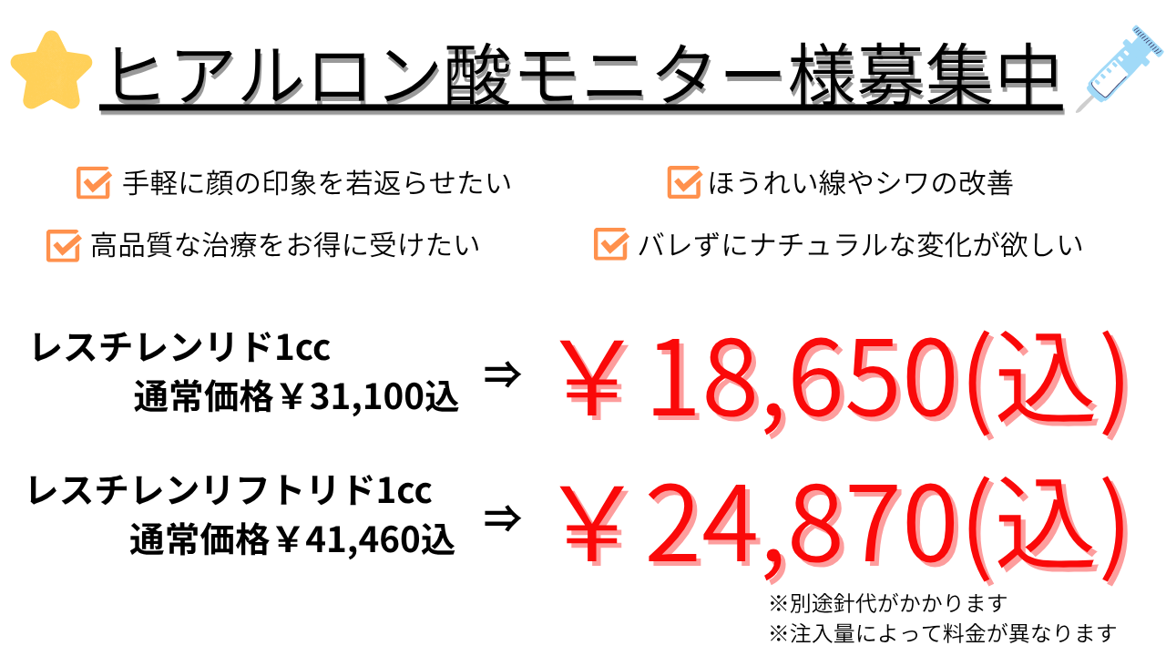 【池袋院】廣澤先生のヒアルロン酸モニター様大募集