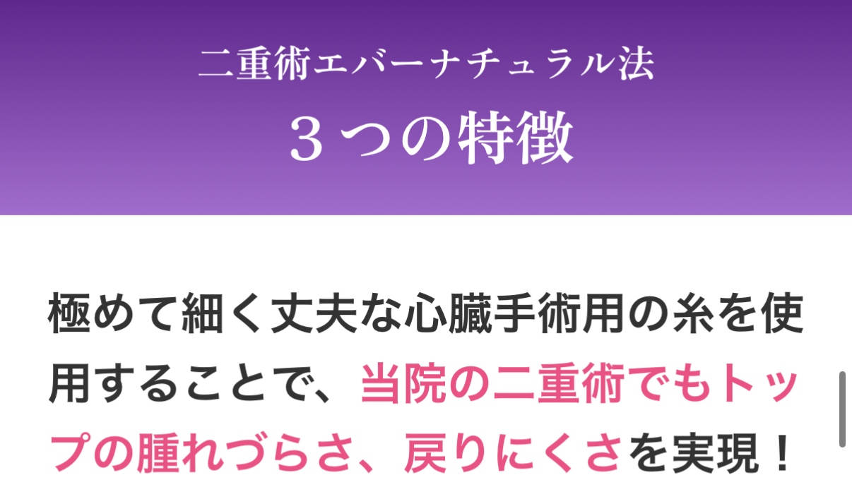 二重術エバーナチュラル法は当院の二重埋没法の中で、最も腫れにくく戻りにくいワンランク上の二重施術になります。