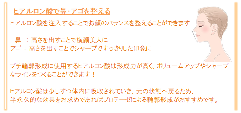 優れたボリューム感と弾力性があり形崩れしにくく、鼻やアゴ形成に特化したヒアルロン酸