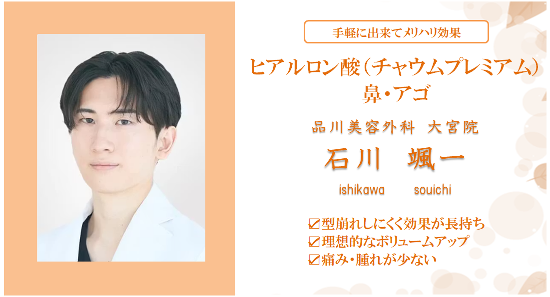 【大宮院】美容外科 石川医師【鼻・アゴのヒアルロン酸注入(チャウムプレミアム)】