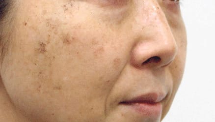 別名、両側性太田母斑様色素斑。20歳を過ぎると、両頬の真皮内に灰色がかったそばかすよりやや大きいシミ(実際にはあざ)が発生します。