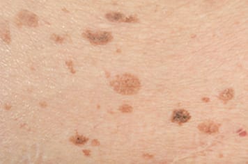 シミの境目が鮮明で、円形茶褐色のシミです。そばかすのような小さなものから、500円玉くらいの大きさになることもあります。