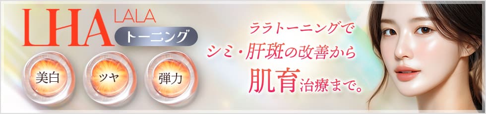 ララトーニングは、ララドクターとレーザートーニングを組み合わせて、シミ・肝斑・くすみを改善する肌育ピーリング治療です。
