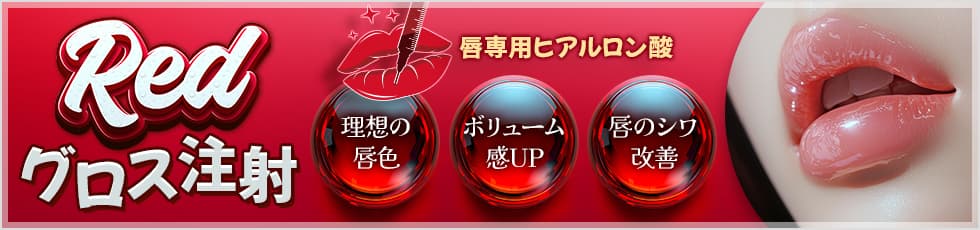 レッド・グロス注射は唇の色とボリューム感を同時にアップさせるヒアルロン酸注射です!縦ジワも目立たなくなり、柔らかく弾力のある自然な唇に仕上がります。