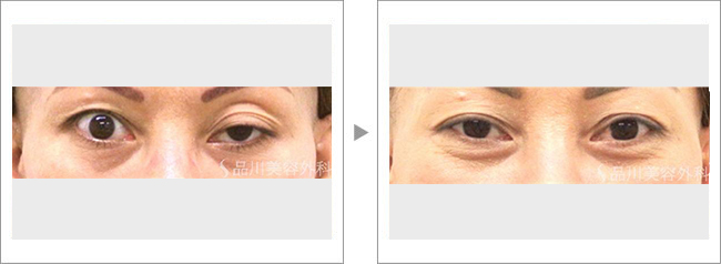 目が寄って、きりっと引き締まった印象になりました。術後1週間の抜糸直後なのでまだ傷が赤く残っていますが、3~6ヶ月ほどでほとんどわからなくなります。