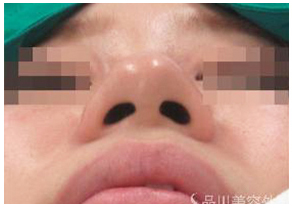 鼻翼軟骨の上についた皮下脂肪や皮膚が厚くなっている状態です。皮下脂肪が多めについて皮膚が厚くなり、鼻先に空気の通るスペースが広くなって、正面からみると丸い形にみえます。