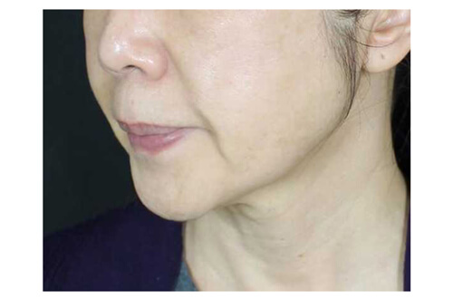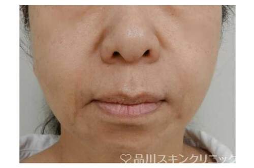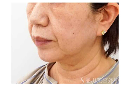 頬のたるみがほうれい線にかぶさり、ほうれい線とマリオネットラインが繋がってみえる方は重度になります。