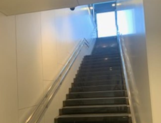 目の前に交差点が見えます。信号を渡らずに左に進んでください。