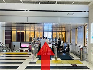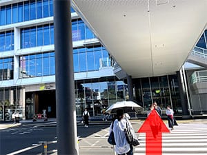 ぺテストリアンデッキに出るので道なりにお進みください。