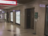 一つ目の角を左に曲がるとエレベーターホールが見えてくるので、「中層階用エレベーター」で6階まで上がってください。【画像】