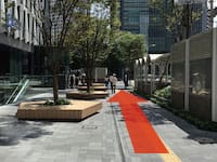 外まで出たら目の前に横断歩道がある大きな通りに出ます。