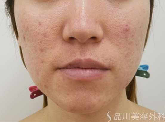炭酸ガスレーザーをフラクショナル(微細な点状)に照射し、真皮まで孔を開けます。これにより、孔周囲が熱変性するので肌が引き締まったり、創傷治癒効果によりコラーゲンが再生し、シワ、タルミ、ニキビ跡の改善ができます。また、面ではなく点状に照射するので、肌表面のやけどなどのリスクや痛みを最小限に抑える事ができます。加えて、お肌に開けた微細な孔が閉じる前に肌の再生を促す成長因子などを塗布すると、より一層肌質改善効果を上げる事ができます。