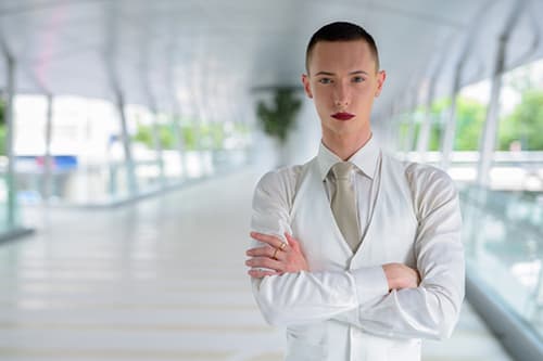「ジェンダーレス男子」と呼ばれる男性たちの特徴は、女性的な要素を取り入れたファッションや着こなしをする、スキンケアやメイクにもこだわるという点でしょう。容貌や体形は色白で細身である傾向があります。