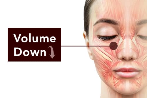 加齢にともなって、目立つようになるゴルゴライン。その発生に大きく影響しているのが、表情筋の衰えとその周辺にある皮下脂肪の減少です。