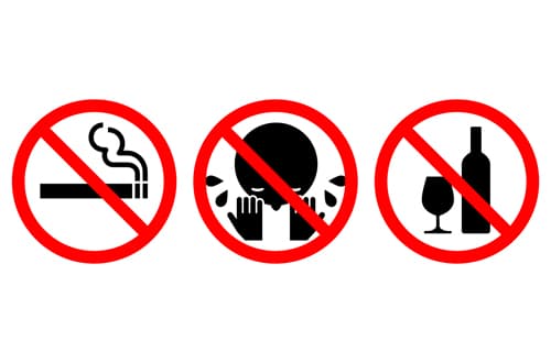 血行が良くなると、美容治療を受けた部位にも血が多く巡るため、腫れや炎症がなかなか引かない状態になってしまいます。入浴や運動、飲酒などは血行を良くする効果があるため、ダウンタイム中に入浴が許可されている場合でも短時間で済ませ、激しい運動やアルコールの摂取は控える方が良いでしょう。また、喫煙も腫れや傷跡の回復を遅らせる要因となるため、控えることが推奨されます。