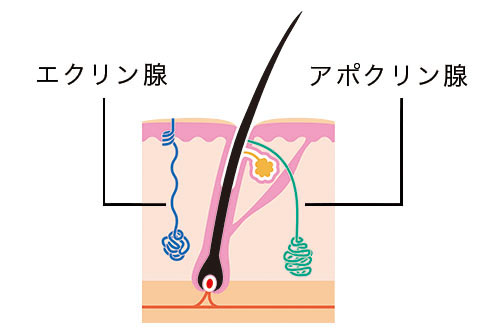 エクリン腺からの汗はほとんどが水分で、臭いはほぼありませんが、これを抑制することでアポクリン腺からの汗の臭いを軽減することができます。