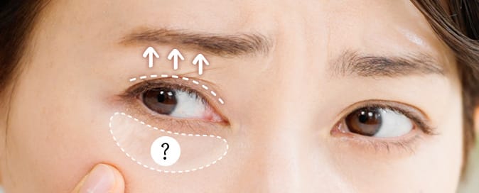 加齢により目の上の脂肪やコラーゲンが減少することでまぶたがたるみはじめます。まぶたがたるむと二重幅が狭くなったり、目尻のシワが目立つようになり、実年齢以上に老けて見える原因となります。