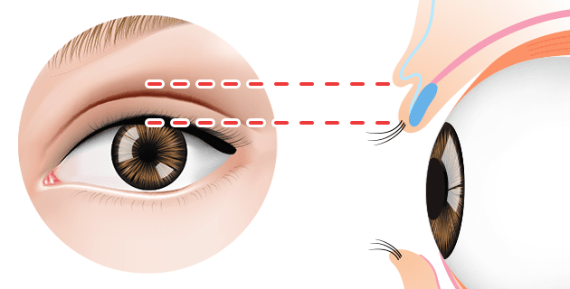 挙筋法とは、まぶたの皮膚と裏側にある挙筋を縫い留める方法です。瞼板を通さないため角膜を傷付ける心配が少ないのが特徴です。