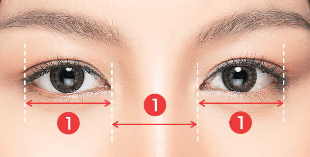理想の美しさを目指すにはもちろん形や大きさが大切ですが、バランスが整っているだけで魅力的に見えるケースがあります。多くの人が美しいと感じる目元は、左右のそれぞれの目の横幅と目と目の間隔が「1 : 1 : 1」が理想的な目の間隔とされています。この理想よりも間隔が狭い場合は「寄り目」、間隔が広い場合は「離れ目」と言われています。
