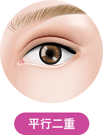 平行二重とは、蒙古ひだがなく目頭まで二重のラインがある、もしくは蒙古ひだが非常に小さく、蒙古ひだを乗り越えて目頭まで二重のラインがある二重を指します。蒙古ひだを持たない黄色人種以外のほとんどがこの平行型二重です。