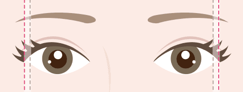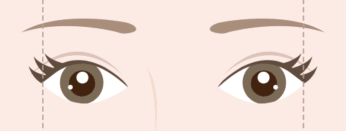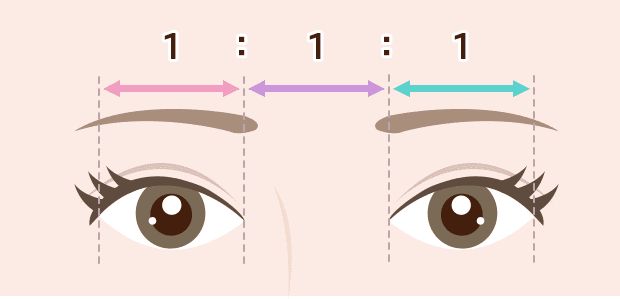 お顔が美しく見える目と目の距離はおよそ1:1:1の比率が理想的とされています。たった1~2mmの差で目元の印象は大きく変わります。