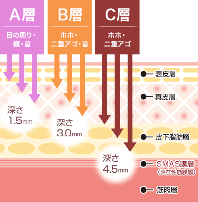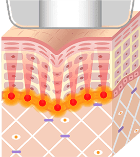 狙った層に正確に熱エネルギーを照射することで、皮膚表面や周りの組織を傷つけずに治療を行います。