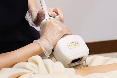 テスト照射で肌質や毛質に応じた照射レベルを調整後、様子を見ながら照射していきます。
