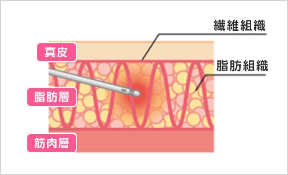 ベイザー波と呼ばれる振動エネルギーで吸引部位の脂肪を柔らかく乳化していきます。線維組織はそのまま保たれます。