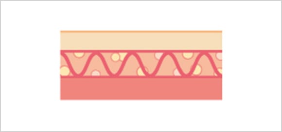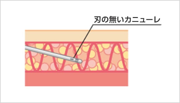 ベイザーは血管や神経を避けて脂肪のみを選択的に溶解することができるため、無理のない吸引が可能です。