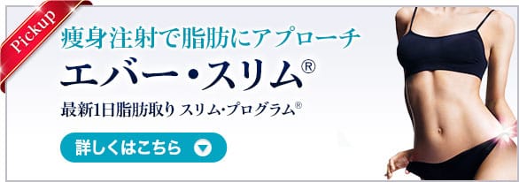 「エバー・スリム®」は、脂肪細胞の溶解・排出を促し皮下脂肪を減少させる治療です。同時に、オリジナル痩身プログラムでスリム体型を維持し、太りにくい身体を作るために医師がサポートします。ダイエットに失敗した方やリバウンドを起こしやすいという方のための医療痩身です。