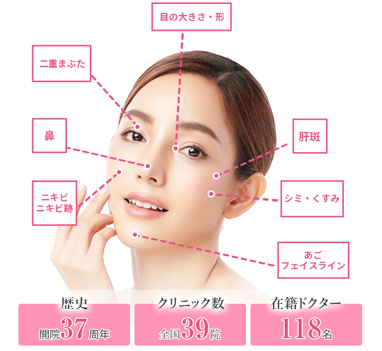 二重まぶた シミ・くすみ・肝斑 たるみ・シワ・ほうれい線 脂肪取り