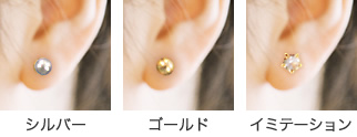 当院ではファーストピアスを基本的にシルバーとゴールドの2種類ご用意いたしております。イミテーションの石がついているものも取り揃えておりますので、カウンセリングの際にお好きな方をお選びください。また、金属アレルギー体質の方でも安心なチタン加工のものもご用意しております。