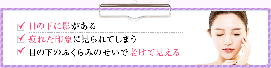 若い方でも目の下のふくらみのせいで クマのように見えてしまうと悩んでいる方は、 意外と多いものです。