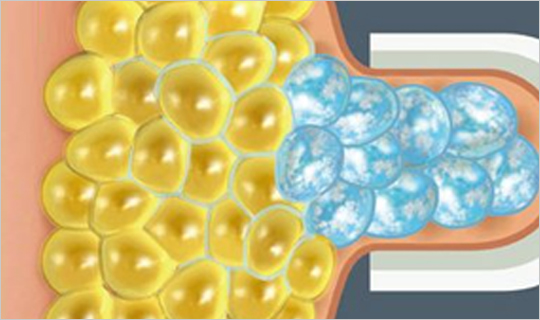 「脂肪細胞は他組織よりも低温に弱い」という性質を使用しており、皮膚などには負担を与えずに脂肪細胞のみに働きかけます。