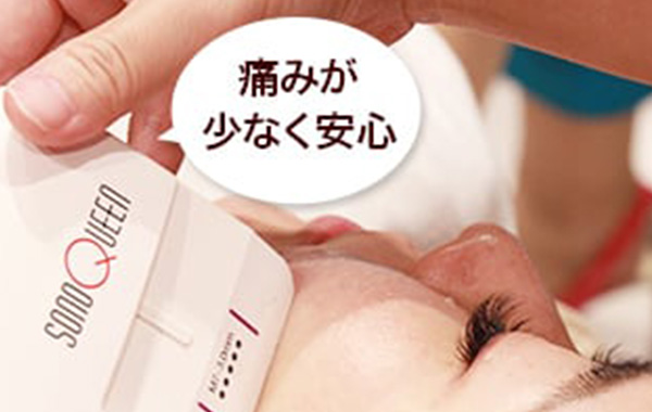 ソノクイーンは、従来のHIFUマシンに比べ痛みが大幅に軽減されダウンタイムも少ない施術法です。