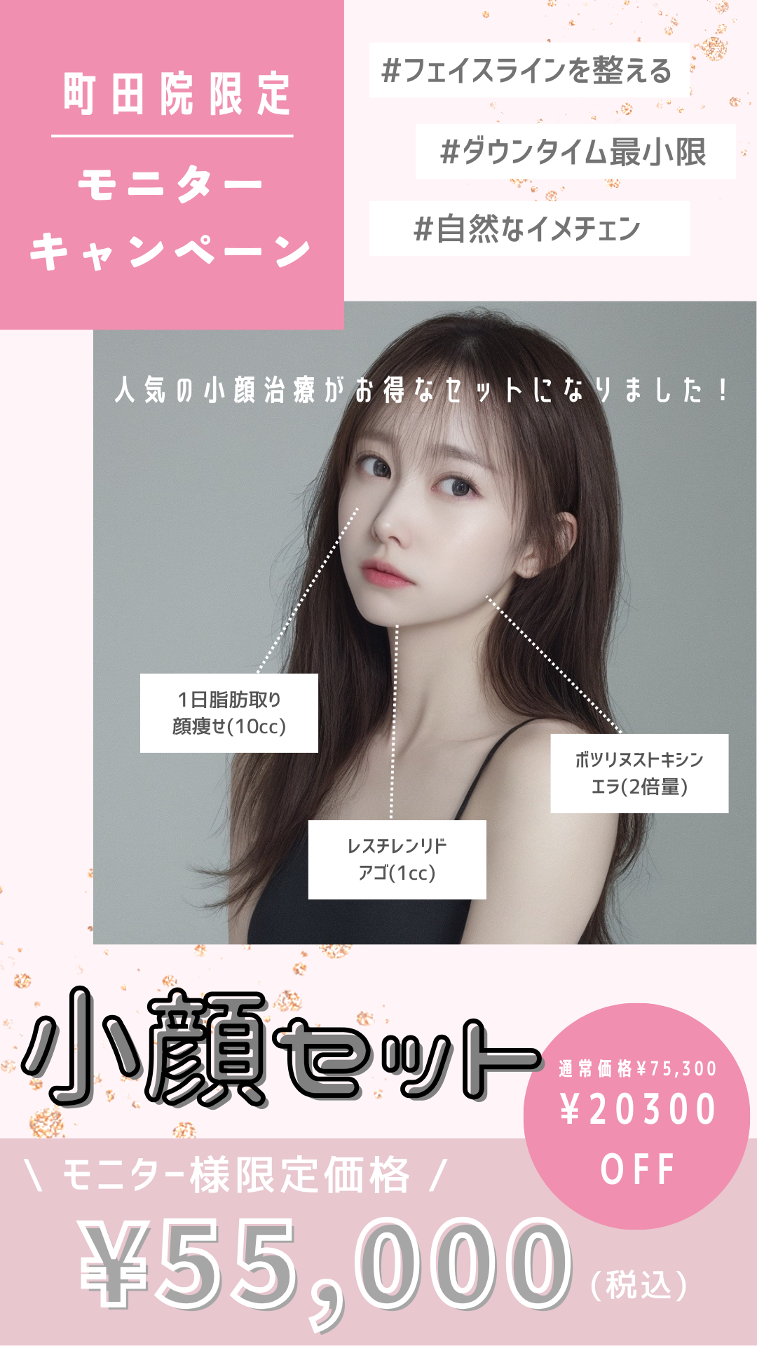 施術名:プチ小顔術/1日脂肪取り顔痩せ/顎ヒアルロン酸注入(レスチレンリド使用)