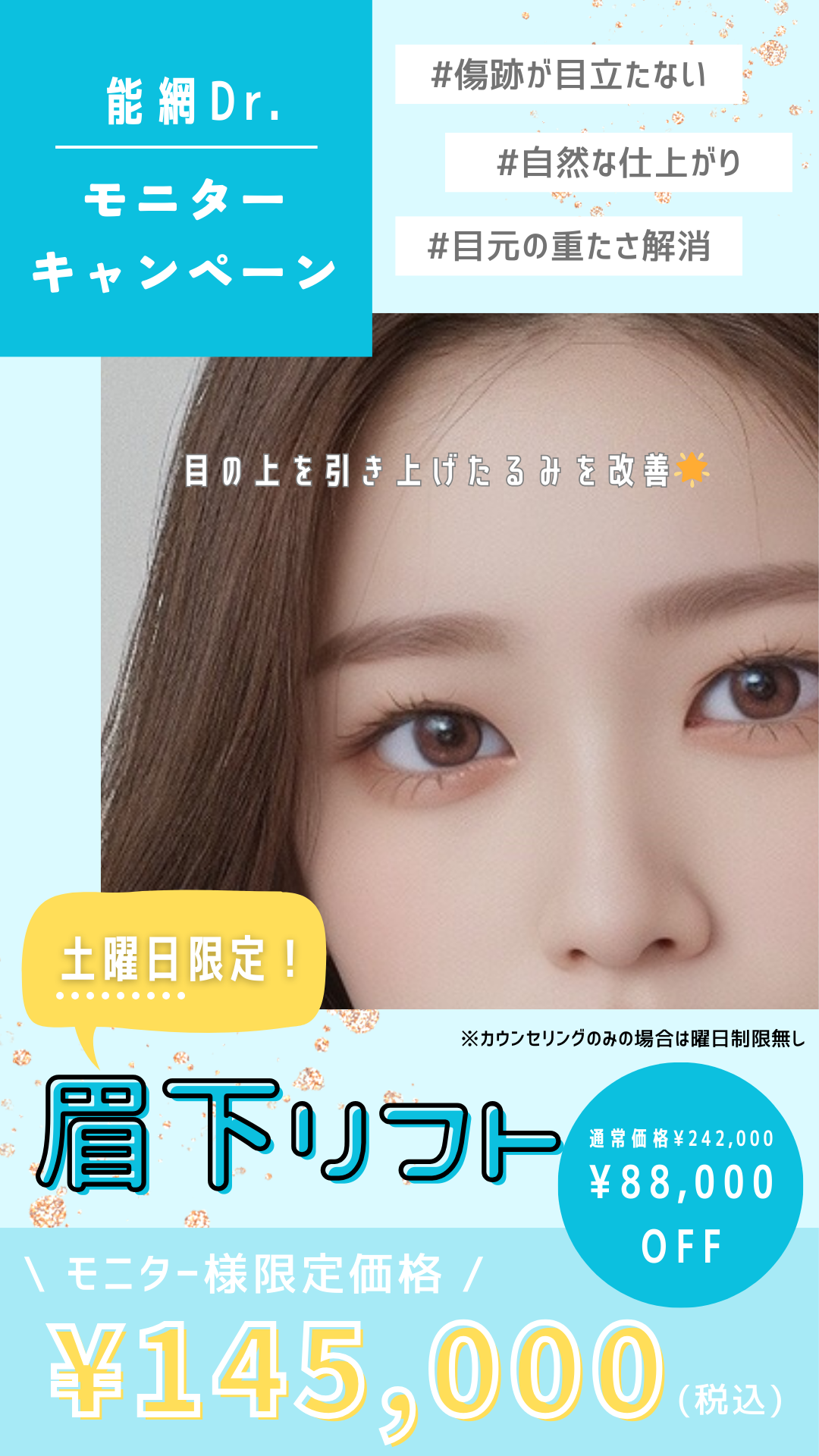 眉毛の下を切開し、目の上のたるみを取る施術。