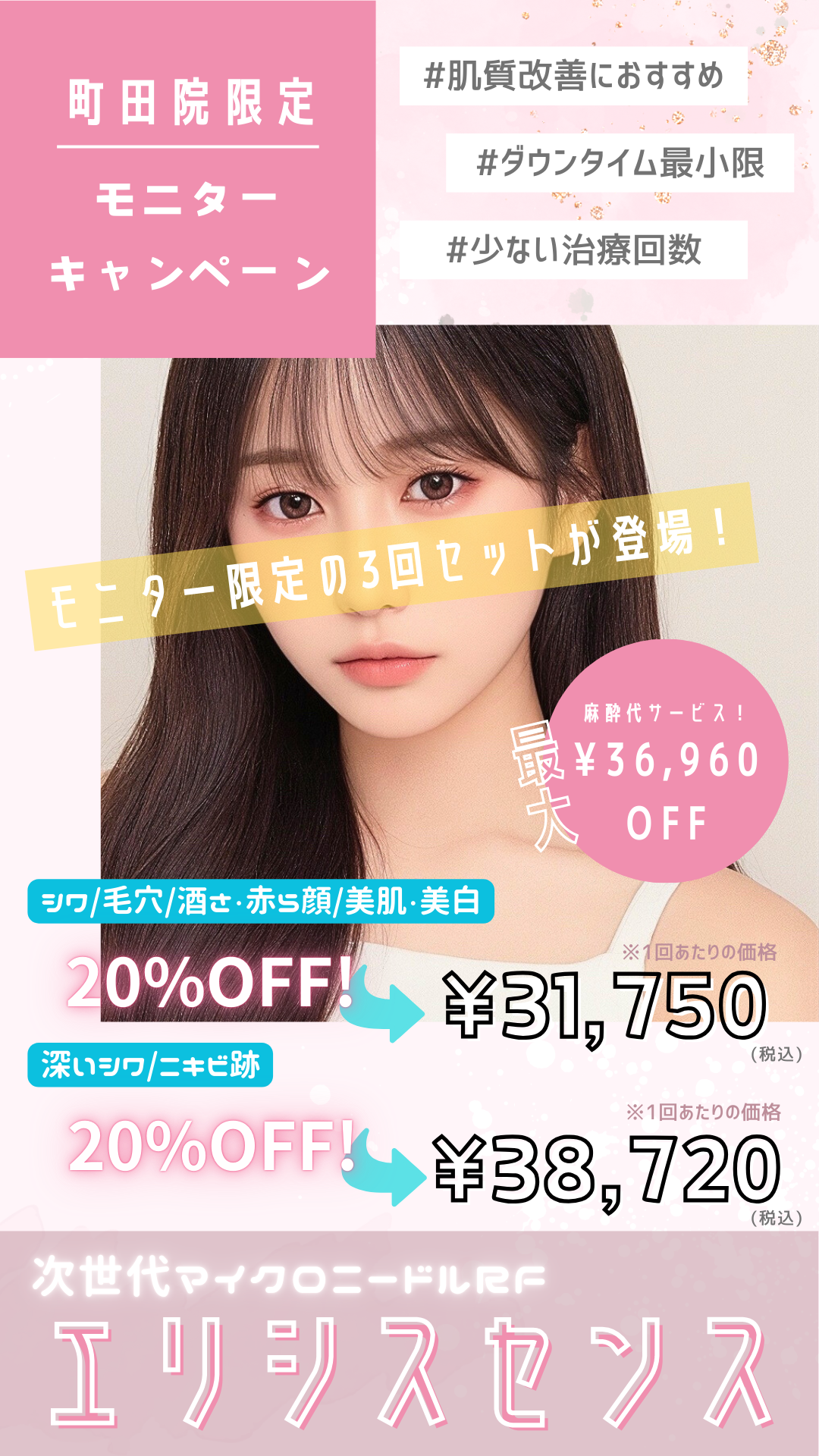 エリシスセンスはニキビや小じわなど複数のお悩みを抱えた方にお勧めです。一度の治療で3つの効果が得られ、針治療特有の内出血や赤みなどのダウンタイムも少ない新しい治療です。