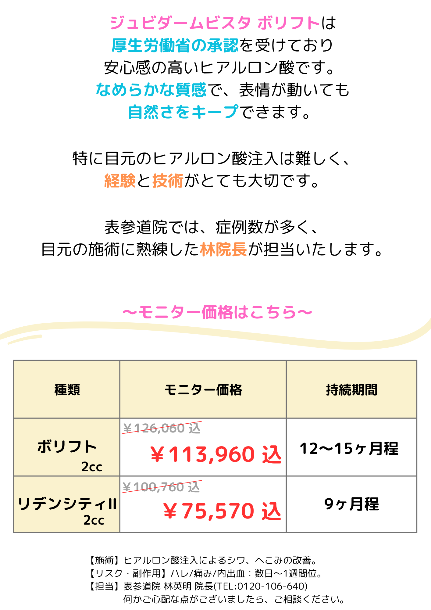 クマ改善注射・ヒアルロン酸注射【表参道院・院長林】